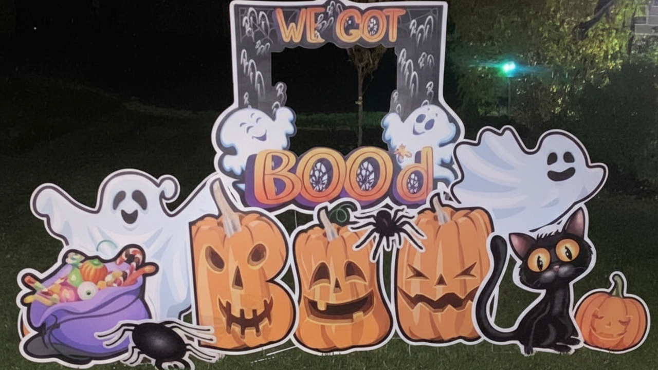 We also offer photo booth rentals that allow guests to capture their costumes and moments in style. Our Halloween-themed photo booths come with custom backdrops, props, and instant prints, making them a perfect addition to parties, school dances, and corporate events. And to add the final touch to your outdoor decor, our yard card displays and lawn signs are perfect for greeting guests and showcasing Halloween messages like “Beware of the Haunted House” or “Happy Halloween!” These vibrant displays make your home or event venue stand out and spread festive cheer throughout the neighborhood.